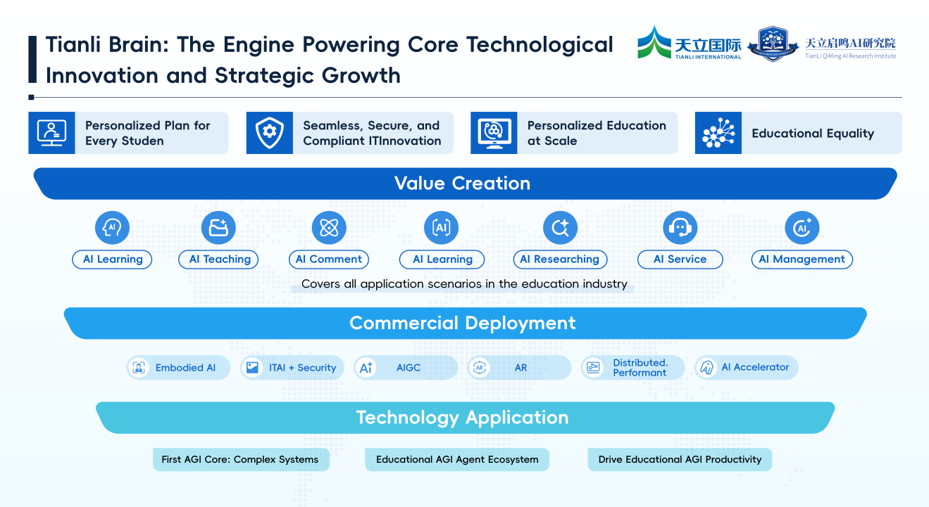 Nature还重点关注了天立正在推进的核心方向——天立学科大脑(Tianli Brain)。该系统以认知引擎与复杂系统理论为基础,构建面向教育场景的垂类AGI系统探索路径。系统架构采用“平台套件—学科模型—教育数据”三原生一体化设计,构建安全可信的教育AGI底座。团队融合深度语义建模与检索增强生成(RAG)技术,并整合学生提问模式、复习策略变化及学习动机波动等“沉默数据”,实现对学生认知状态的多维度刻画与动态预测。